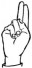 На ћирилици написано КАЋА ВУНИЋ састоји се из 9 слова [?]. Исписано ћириличном једноручном азбуком за глувонеме: